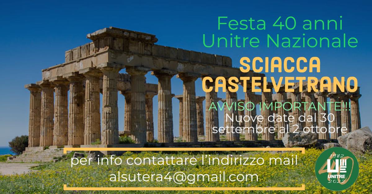 Manca meno di una settimana ai festeggiamenti dei 40 anni di Unitre Nazionale nel Sud Italia. L'evento sarà dal 30 settembre al 2 ottobre a Sciacca-Castelvetrano nel cuore della Sicilia.